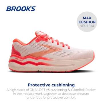 Brooks Women’s Ghost Max 2 Neutral Running & Walking Shoe - White/Peach/Coral - 7 Medium