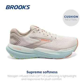 Show moreIntroducing the Brooks Glycerin 21 - the perfect companion for runners who prioritize super-soft cushioning for enhanced comfort on any terrain. Designed with runners in mind, this exceptional women's shoe provides the ultimate softness with its nitrogen-infused DNA Loft v3 cushioning, delivering a plush and responsive experience every time you lace up. The innovative design features a plush internal fit and smooth, stable transitions that keep your foot surrounded in luxury, ensuring every step is taken with ease. Experience the perfect blend of style and function with an engineered warp knit upper that boasts breathability, offering a flexible fit while maintaining an incredibly soft touch against your foot.