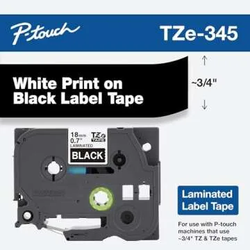 Brother Genuine P-Touch TZE-345 Tape, 3/4" (18 mm) Standard Laminated P-Touch Tape, White on Black, Laminated for Indoor or Outdoor Use, Water-Resistant, 26.2 ft (8 m), Single-Pack