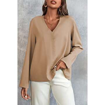 BROVAVE Women's Long Sleeve Shirts V Neck Business Casual Plain Work Blouses Tops