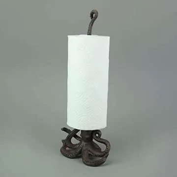 In comparison to other kitchen accessories, the Brown Cast Iron Octopus Paper Towel Holder stands out for its robust construction and unique design. While many holders are made from plastic or lightweight materials, this piece’s cast iron material ensures durability and stability. Additionally, its enchanting octopus shape and distressed finish give it personality that far surpasses conventional offerings, making it a unique blend of form and function that resonates with coastal aesthetics.