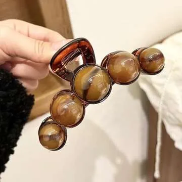 Brown Pearl Hair Clips Large Pearl Hair Claw Clips for Thick or Thin Hair Acrylic Hair Accessories Elegant Smudging Design Hair Clamp Clips No Crease Jaw Clips Barrette for Daily Wedding Hair Styling