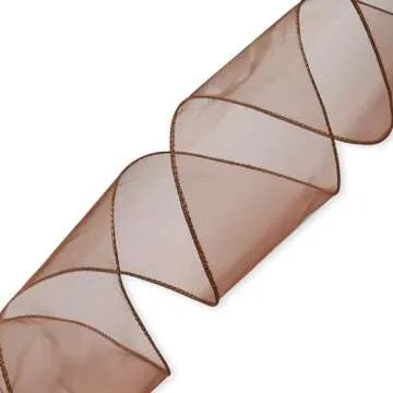 Elegant Brown Sheer Organza Wired Ribbon for Crafts and Decor, 2.5" x 25 Yards