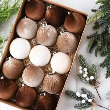 Show more Elevate your holiday decor with our stunning velvet Christmas ornaments. Crafted to impress, these ornaments come in a rich color palette featuring shades of brown, neutral, and beige, perfect for achieving a classic and minimalist look. Whether you’re looking to enhance your Christmas tree or create a beautiful holiday centerpiece, these ornaments will undoubtedly captivate and delight your guests.