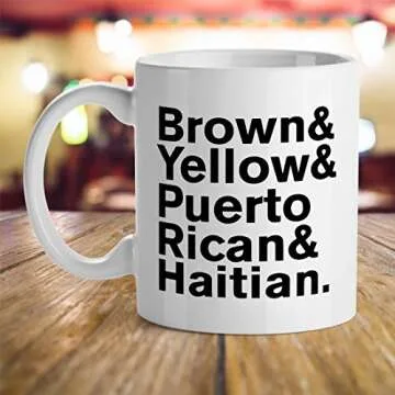 When compared to other mugs in the market, the Brown & Yellow & Puerto Rican & Haitian Famous Names Character Anime Popular Novelty Office Inspirational Ceramic Coffee Tea Cup Mug stands out due to its unique cultural design and humor. While many ceramic mugs offer basic designs, this product incorporates a playful yet motivational element that resonates with a diverse audience, making it not just a mug, but a statement piece. Furthermore, its affordability and quality ensure that it is a smart choice for anyone wanting to surprise a friend or brighten their workspace.