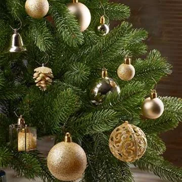 BRUBAKER 101 Pack Assorted Christmas Ball Ornaments - Shatterproof - with Green Pickle and Tree Topper - Designed in Germany - Champagne