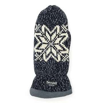 BRUCERIVER Women Snowflake Knit Mittens with Warm Thinsulate Fleece Lining - Size L (Black)