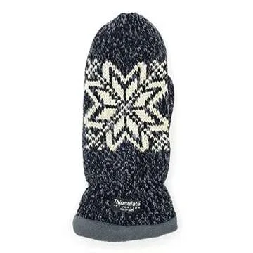 Show moreExperience ultimate warmth and style with the BRUCERIVER Women Snowflake Knit Mittens. Crafted from 100% Acrylic knit fabric, these mittens feature a luxurious warm fleece lining equipped with Thinsulate technology, ensuring your hands stay cozy while providing excellent insulation against the cold. Designed for practicality and chic aesthetics, the snowflake pattern adds a festive touch, perfect for both winter sports and casual outings. Available in a variety of colors such as Black, Blue Grey, DK Grey, Beige, Grey, Red, Aubergine, and Blue, these mittens are not only functional but also a stylish accessory for your seasonal wardrobe.