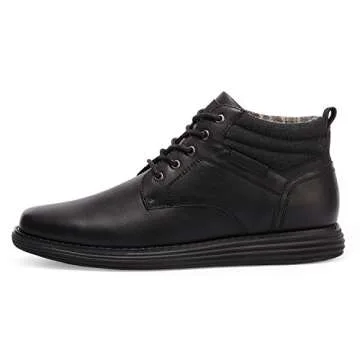 Show moreIntroducing the Bruno Marc Men's Mid Top Chukka Sneaker Lace Up Dress Boot – the ultimate footwear choice for those who value both style and comfort. Crafted with a high-quality PU leather upper, these boots boast a sleek, all-black finish that enhances their versatility, making them perfect for any occasion – be it a business meeting or a casual outing. The water-resistant feature means your feet will stay dry regardless of the weather, while the breathable fabric lining ensures that you enjoy comfort without the worry of stuffy feet.