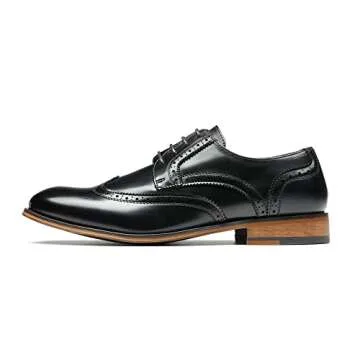 Show moreDiscover the elegance of our Men’s Wingtip Dress Shoes, meticulously designed in the USA to elevate your formal wear. Crafted with a soft synthetic leather upper, these shoes feature a classic wing tip toe and intricate brogue detailing that adds a touch of sophistication and style to any outfit. The lace-up construction ensures a secure fit, giving you the comfort and confidence needed for any occasion.