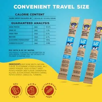 Show moreIntroducing **Brutus Bone Broth for Dogs**, the ultimate gourmet meal topper for your beloved canine companion! This all-natural beef bone broth powder is specially crafted to provide the essential nutrients your dog needs while tantalizing their taste buds. Now conveniently packaged in a travel-sized 10-stick format, you can easily take this delightful dog sauce with you wherever life leads - be it on hikes, camping trips, or simply at home! Each serving maintains the rich, savory beef flavor that has made Brutus Broth a favorite among discerning dog owners, ensuring your furry friend enjoys every meal.