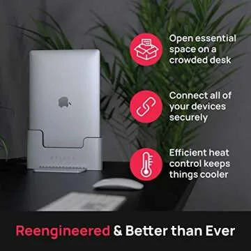 Brydge Space-Saving Laptop Stand | Vertical Docking Station | Compatible with 13-inch MacBook Air (2021-2018) | 2 x Thunderbolt 3 Ports | (Space Gray)