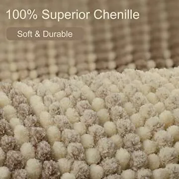 Show more Experience the ultimate in bathroom luxury with our plush chenille bath rug, designed to bring comfort and style to your home. Made from 100% superior chenille yarn, this rug features thick, soft piles that pamper your feet while providing a soothing surface that shields them from cold floors. The high density and plushness of our bath mat far exceed the quality found in most competitors, ensuring maximum comfort with every step.