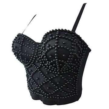 bslingerie® Madonna Style Metallic Studs Bustier Bra Corset Top (XL, Black Pearl)