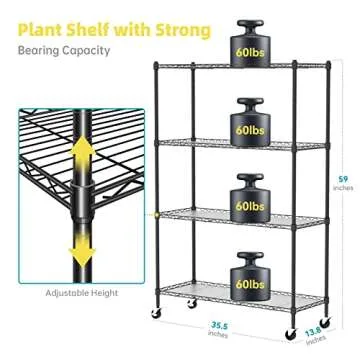Show more Introducing the Bstrip Plant Shelf with Grow Lights, the perfect solution for indoor plant enthusiasts! This 4-tier plant shelf measures an impressive 59 inches in height and 35.4 inches in length, providing ample space for all your favorite greenery. Crafted with versatility in mind, it is designed to hold everything from succulent arrangements to seed trays and beautiful flowers. Say goodbye to dull, uninspiring plant setups and transform your indoor space into a lush oasis with this stylish and functional grow light shelf!