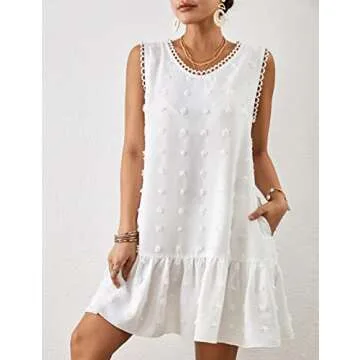 Show more Discover the perfect blend of style and comfort with the Bsubseach Bathing Suit Cover Ups for Women, a must-have addition to your summer wardrobe. Designed for versatility and ultimate ease, this sleeveless beach dress is ideal for basking in the sun or stepping into evening events. Available in a one-size fits all, accommodating US sizes M, L, and XL, this dress features a bust measurement of 42.5 inches and a flattering knee-length cut of 35.5 inches that promises to complement every body shape. With its chic swiss dot texture and elegant neckline, you’ll not only feel confident but look stunning wherever you go—whether it’s the beach, poolside, or a summer party.