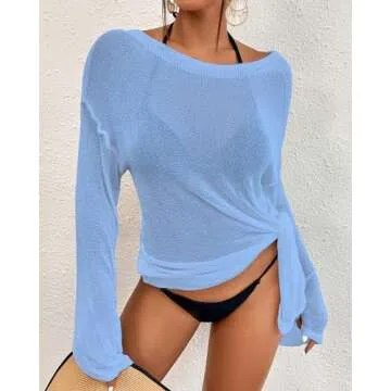 Bsubseach Crochet Swimsuit Coverup for Women Sheer Bathing Suit Cover Ups Kintted Swimwear Bikini Beach Vacation Outfits Sky Blue S
