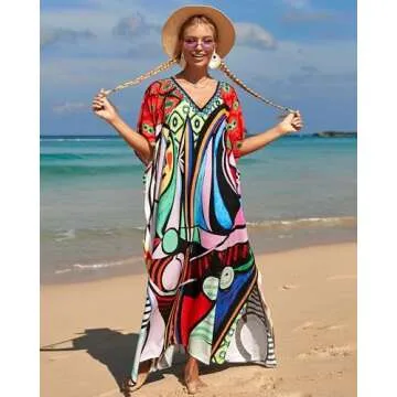 Bsubseach Kaftan Dresses for Women Plus Size Tie Dye Batwing Sleeve Caftans Swimsuit Coverup Maxi Dress Loungewear Face Motif