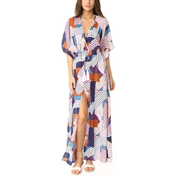 The design features a striking array of patterns that are visually captivating and perfect for warm weather escapades. Lightweight and quick-drying material means you can enjoy the ocean waves without worrying about wet fabric clinging uncomfortably to your skin. Ideal for those spontaneous beach trips or a casual dinner with friends, this cover-up adds a touch of sophistication to any outfit.