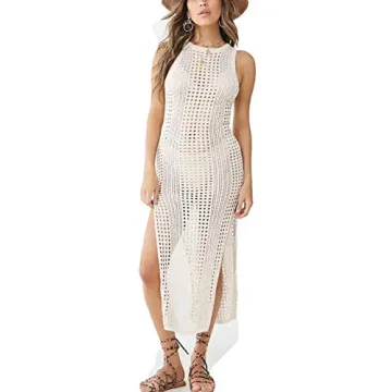 Show more Introducing the ultimate blend of style and comfort with our exquisite crochet beach cover-up designed for the modern woman. This stunning cover-up is created with a soft and breathable stretch fabric that effortlessly hugs your curves while providing ample coverage for those sun-filled beach days. Made by a trusted brand known for its exceptional quality, this cover-up features a see-through scoop neckline and sleeveless design, making it the perfect choice to showcase your fabulous swimwear underneath.