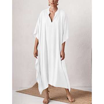 Bsubseach Women Kaftan Dresses Caftan Loungewear Maxi Dress Swimsuit Cover Up Beachwear White