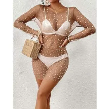 Bsubseach Women’s Sheer Swimsuit Cover Up with Pearl Rhinestones
