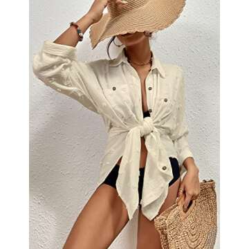 Bsubseach Women Swimsuit Coverup Blouse Button Down Shirt Dresses Swiss Dot Tops Apricot