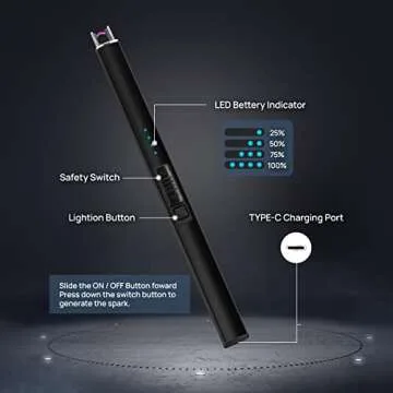 Bswalf Lighter Candle Lighter, Electric Lighter USB Rechargeable Lighters Have Triple Safety and LED Battery Display, Windproof Flameless Plasma Arc Lighter for Candle Camping Grill (Black)