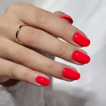 BTArtbox Press On Nails Short - Salmon Pink Press on Nails, Oval Fake Nails with Nail Glue, Reusable Glue On Nails in 16 Sizes Nail Kit, Tomato Tango