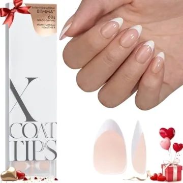 BTArtboxnails Soft Gel Nail Tips - XCOATTIPS French Series French Tip Press on Nails, Short Almond Press On Nails, Nude Acrylic Fake Nails Glue On Nails Extension Set Valentines Day Gift