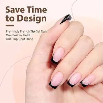 btartboxnails XCOATTIPS French Nails - Black French Tip Press on Nails, Soft Gel Square Nail Tips, Short Press on Nails, Soak Off Acrylic Nails Extensions Pink