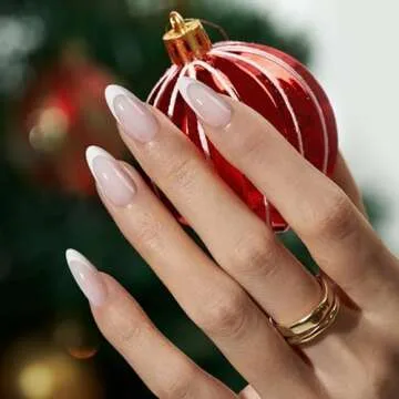 BTArtboxnails XCOATTIPS French Tip Gel Nail Tips Almond - Modern French Tip Press On Nails Medium, Milky White Fake Nails Pre-applied Tip Primer Base Coat, No Need File False Nails for Home DIY