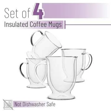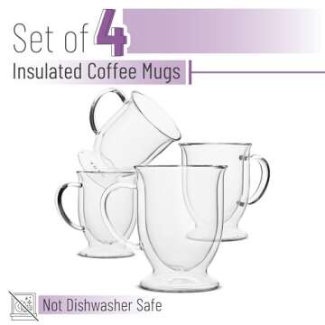 BTaT- Coffee Mug Set of 4 (12oz, 350ml) Double Wall Glass Coffee Cups, Tea Cups, Beer Glasses, Clear Mugs, Glass Cups