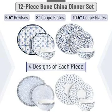Show moreElevate your dining experience with the BTaT Dinner Set, a stunning 12-piece bone china collection that combines classic elegance with contemporary design. This exquisite dinnerware set features mesmerizing blue patterns elegantly set against a pristine white background, creating a visually striking table setting that is bound to impress your guests and enhance your meals. The collection is thoughtfully designed for both everyday dining and special occasions, making it a versatile addition to your kitchen or dining room.