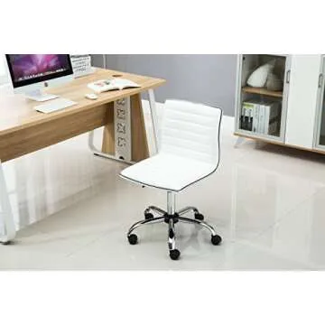 BTEXPERT BTExpert Swivel Mid Back Armless Ribbed Designer Task Chair Leather Soft Upholstery Office Chair - White