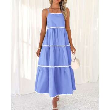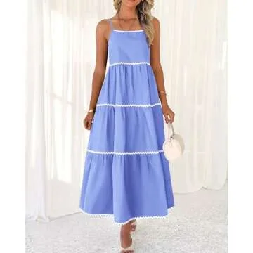 Show more Introducing the BTFBM Boho Summer Dress, the perfect addition to your warm-weather wardrobe! Tailored for style and comfort, this exquisite maxi dress features adjustable spaghetti straps and a stunning backless design. Not only does it showcase your beautiful neckline, but the unique RIC Rac trim adds a touch of playful elegance. The breathable, lightweight fabric flows gracefully with your movements, making it ideal for those sunny days or evening events. This versatile A-line dress, with two convenient side pockets and flattering pleated details, will quickly become your go-to outfit for any occasion.