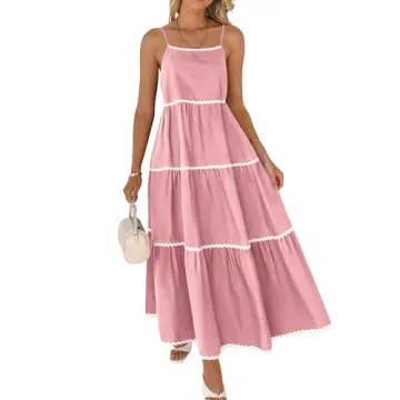 Show more Step into the warm days of summer with the captivating BTFBM Boho Summer Dresses 2025, a standout choice for any occasion. This Spaghetti Strap Backless Sundress combines elegance with comfort, featuring a charming RIC Rac Trim that adds a playful touch to your style. Made from high-quality materials, this dress boasts a flowy pleated design that effortlessly flatters the female silhouette while ensuring breathability during those warm afternoons. With available sizes ranging from S (4-6) to XXL (20), it promises a true fit for everyone while maintaining a comfortable loose fit. Ideal for those who valued both fashion and comfort, this maxi dress is an essential addition to your wardrobe!