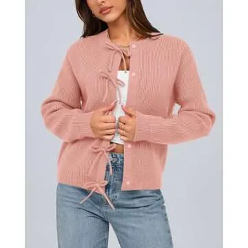 Show more Enhance your wardrobe with the exquisite Open Front Cardigan designed specifically for modern women who appreciate comfort without sacrificing style. This stunning cardigan boasts a unique decorative bow design that adds a playful yet sophisticated touch to any outfit. Made from soft ribbed knit material, it ensures warmth while maintaining a chic silhouette. The crew neckline and long sleeves provide adequate coverage, making it an ideal choice for the colder seasons or simple layering.