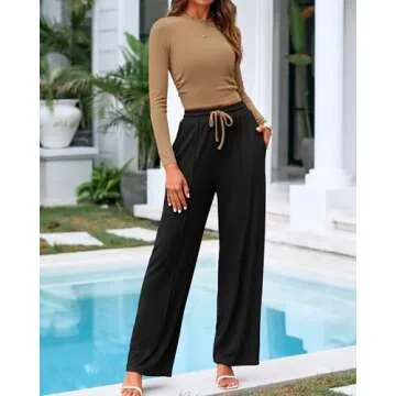 Crafted from soft, stretchy fabric, the top boasts a **crew neckline**, and the long sleeves offer just the right amount of coverage, making it ideal for year-round wear. The elastic waist with a drawstring on the pants ensures a flexible fit, while the side pockets add practicality to your style. With its sophisticated ribbed texture and **timeless design**, this ensemble provides a comfortable fit while allowing you to express your personal style effortlessly.