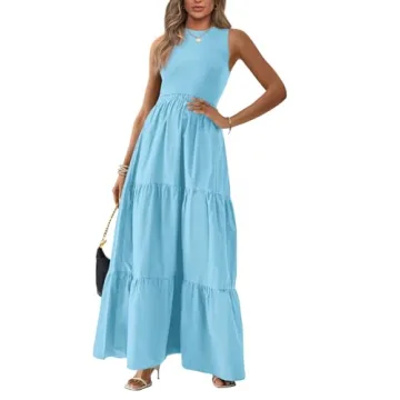 Step into elegance and comfort with the BTFBM Sleeveless Maxi Dress, a perfect blend of style and functionality for any summer occasion. Crafted from a soft ribbed knit top and a lightweight polyester skirt, this dress offers unparalleled comfort and a chic bohemian vibe. The sleeveless design and classic crew neck enhance your feminine charm, while the elastic high-waist and layered skirt flatter your figure, creating a romantic silhouette. Whether you're attending a wedding, prom, or a casual beach outing,...