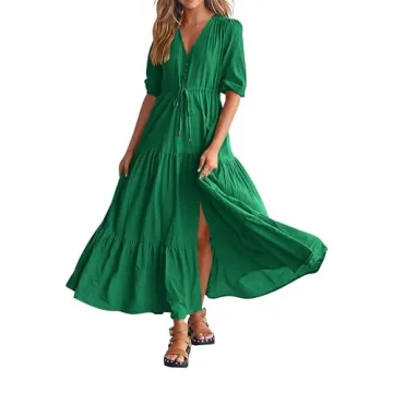 BTFBM Formal Wedding Guest Dresses for Women Casual Short Sleeve V Neck Summer Dress Maternity Dress for Photoshoot(Solid Green,XX-Large)