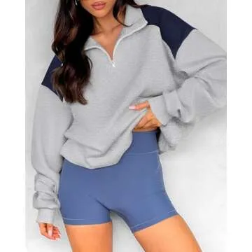 Show more Introducing the BTFBM Quarter Zip Sweatshirts for Women, the perfect combination of style and comfort for your 2024 fall wardrobe! This fashionable pullover is designed with a contemporary color block pattern that truly makes a statement. Not only does it feature a stylish half-zip collar for an effortlessly chic look, but it's also crafted from a soft, skin-friendly fabric that ensures a delightful wearing experience. Choose from a variety of stunning colors including Light Grey, Dark Blue, and even a festive Dark Green for those cozy holiday gatherings. Whether you prefer a tailored fit or an oversized style by ordering a size up, this sweatshirt caters to all preferences!
