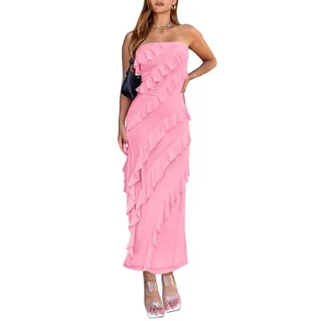 Show moreStep into the spotlight with the BTFBM Summer Dresses for Women, a stunning addition to your formal wardrobe that perfectly captures the essence of elegance and contemporary style. Tailored for the modern woman, this strapless slim fit cocktail dress is crafted from high-quality mesh fabric, ensuring a breathable and lightweight wear, making it ideal for summer events. The beautiful light pink hue radiates warmth and charm, while the ruffle detailing adds a playful twist, giving you that ethereal look. Ideal for both understated elegance and statement style, this dress is perfect for weddings, parties, and many more special occasions.