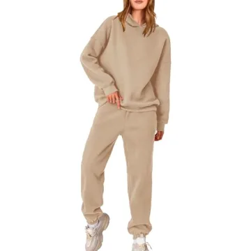 BTFBM Women 2 Piece Sweatsuits Long Sleeve Hooded Pullover Jogger Pants Fall Winter Casual Loose Lounge Sets Tracksuit(Solid Khaki, Medium)