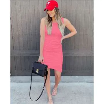 Show moreIntroducing the stunning BTFBM Women 2024 Summer Sleeveless Tank Dress, a perfect blend of comfort and style for your summer wardrobe. Designed with a sleek crew neck and a unique one-sided ruched detail, this bodycon dress enhances your natural curves while ensuring that you look beautifully elegant on any occasion. Available sizes range from S (US 4-6) to XL (US 16), offering a tailored fit for a variety of body types. Crafted from a soft, breathable, and stretchy fabric, this dress not only feels great against your skin but also accentuates your silhouette flawlessly.