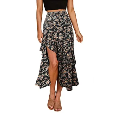 Summertime calls for stylish pieces, and this skirt delivers with its eye-catching high-low hemline adorned with a chic side split. The ruffle detail adds a playful touch, creating a beautifully flowy silhouette that moves gracefully with you. Perfect for casual outings, weddings, or simply lounging beachside, this maxi skirt is a must-have for all fashion lovers looking to elevate their summer looks.