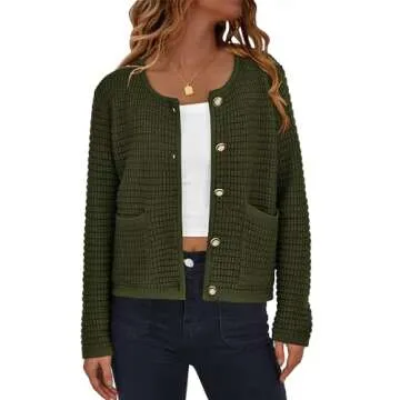 BTFBM Women Cardigan Sweaters Fall Fashion 2024 Button Down Long Sleeve Chunky Knit Open Front Tweed Jacket Outerwear(Solid Army Green, Small)