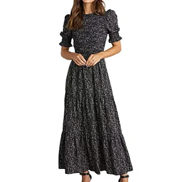 Show moreIntroducing the BTFBM Women Casual Summer Dress, a true embodiment of style, comfort, and versatility that every modern woman deserves in her wardrobe. Made with a soft, lightweight fabric, this stunning maxi dress feels like a dream against the skin while ensuring maximum breathability for those warm summer days. The flattering smocked bodice, coupled with short puff sleeves featuring elastic ruffle cuffs, strike the perfect balance between playful elegance and refined style. Ideal for any occasion, this dress is a go-to choice for everything from casual outings to more dressy affairs.