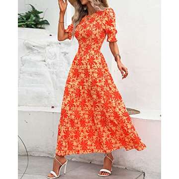 BTFBM Women Casual Summer Dresses 2025 Spring Crew Neck Ruffle Short Sleeve Floral Print Smocked Boho Flowy Maxi Dress