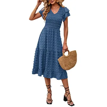 Show moreIntroducing the BTFBM Women Casual Summer Short Ruffles Tiered Sleeve Smocked Midi Dress, a beautiful blend of elegance and comfort that is perfect for all your summer errands and events. This stunning dress is crafted from soft and flowy chiffon fabric, designed to gracefully embrace your body while offering a relaxed fit. The vibrant floral patterns and charming ruffle tiered sleeves give it a delightful bohemian vibe, making it a versatile piece for any wardrobe. Whether you're attending a wedding or enjoying a sunny day out, this dress promises to keep you looking chic and feeling comfortable.